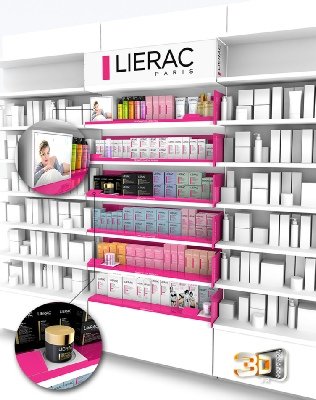 Création en Infographie 3D d’une étagère pour les produits cosmétiques Lierac.